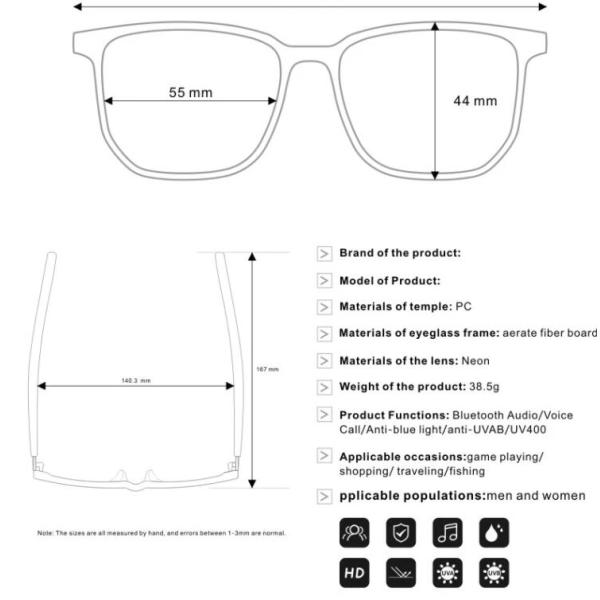 The sunglasses integrate with the intelligent touch control in the precise appearance design, which contain many functions in the glasses legs, the simple operation pattern is smart and convenient, it support IP67 level of dust and water resistance, the technology and fashion make you enjoy the wearing experience.